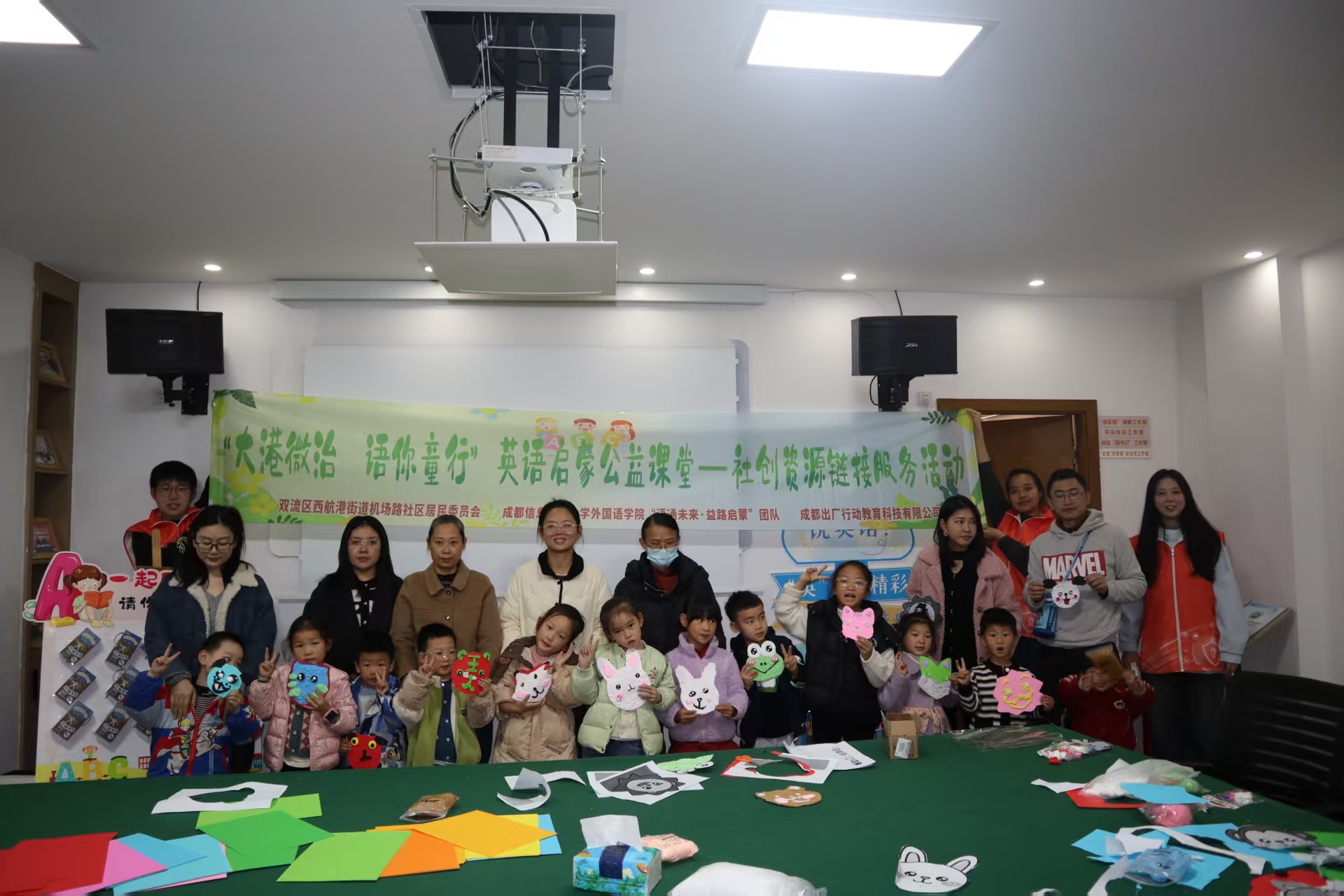 2025年11月30日14:00-16:30,由双流区西航港街道机场路社区居委会主办、成都信息工程大学学生外语俱乐部承办的“大港微治,语你童行”英语启蒙公益课堂,在机场路社区党群服务中心2楼欢乐开讲,为孩子们带来了一场趣味十足的英语启蒙体验。