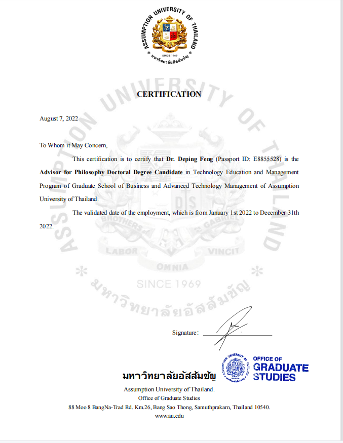 近日,经泰国易三仓大学研究生院学术委员会审议通过,我校外国语学院冯德平副教授受聘为该校研究生院博士研究生指导教师。冯德平副教授具有博士学位,毕业论文指导经验丰富。冯德平副教授的受聘,突出了国外院校对我校教师学术能力和科研水平的认可,有助于我校外语学科集群师资队伍建设和高层次人才培养。