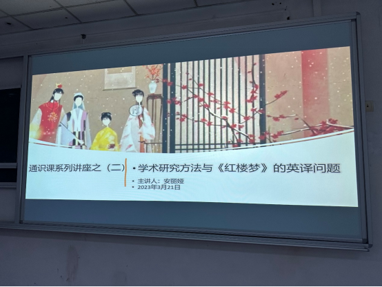 2023年3月21日晚7点,外国语学院讲师、英国三一圣大卫大学博士研究生安丽娅老师,在航空港校区一教207举办通识课系列讲座(二)“学术研究方法与《红楼梦》的英译问题”。本次讲座七点准时开始,到九点结束,共两个小时。该讲座主要面对新生,但由于和第二课堂联动,除了2022级外语学院的大一新生外,到会的学生还包括了来自全校二十多个专业的同学,共出席154人,其中有电科、电信、电气、大气、财管、环境、会计、机电、计科、软工、人工智能、物联网、数媒、通信、网工、信安、数学、光电、机器人、自动化等。