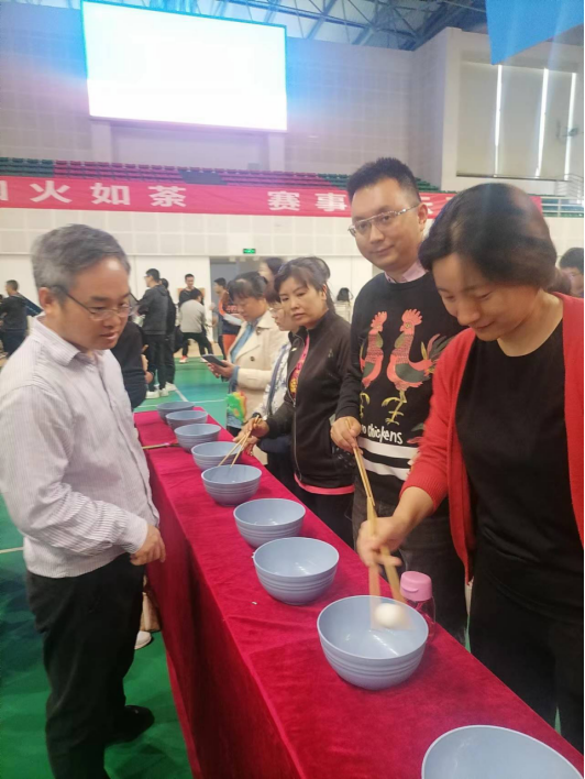 外国语学院共有16位老师参加了全部5个项目的角逐。黄驰、陈琪、熊晖、杨云安等10位老师参加了飞盘投篮比赛。谭杰、熊晖、吴尧、刘鋆、于守华和樊倩蓉共6位老师参加了双人投球比赛。黄驰、冯德平、王娟、吴倩、何春梅、达苗、邓文英、杨云安、赵瀛和熊成共10位老师参加了夹乒乓球接龙比赛,队员们稳准狠,气定神闲。杨昊、周曼斯等6位老师参加了四两拨千斤比赛,队员们还参加了小型保龄球比赛。