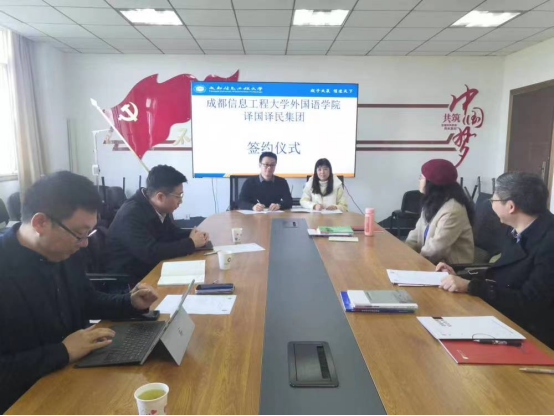 2023年11月16日,译国译民集团区域总监吴强、翻译培训部总监谢亮亮、区域合作经理蔡舒超一行莅临我院,与学院领导进行了洽谈,并签署了校企合作协议,同时举行了校企合作基地授牌仪式。外国语学院党委书记杨昊、院长黄驰、副院长陈琪、谭杰教授参加活动。