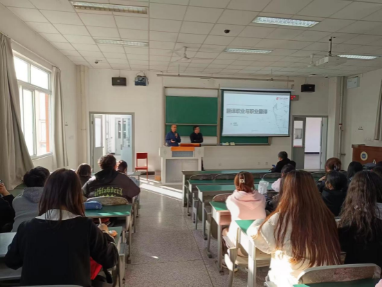 会后,译国译民集团翻译培训部总监谢亮亮还为我院学生举办了《翻译职业与职业翻译》的主题讲座,为学生就翻译与职业发展展开了深入的探讨和分析,鼓励学生为未来的职业生涯发展做好积极准备,让学生对未来的学习和职业发展路径有了比较清晰的认识。