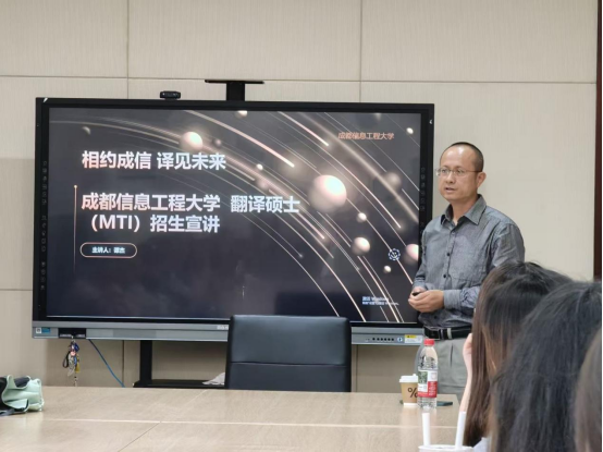 讲座中,谭杰教授介绍了成都信息工程大学外国语学院的发展历程、学科特色及MTI学位点建设情况,还就报考条件、学制安排、报名流程及初试复试科目等考生关注的内容进行了系统说明,为考生提供了清晰的备考路径。