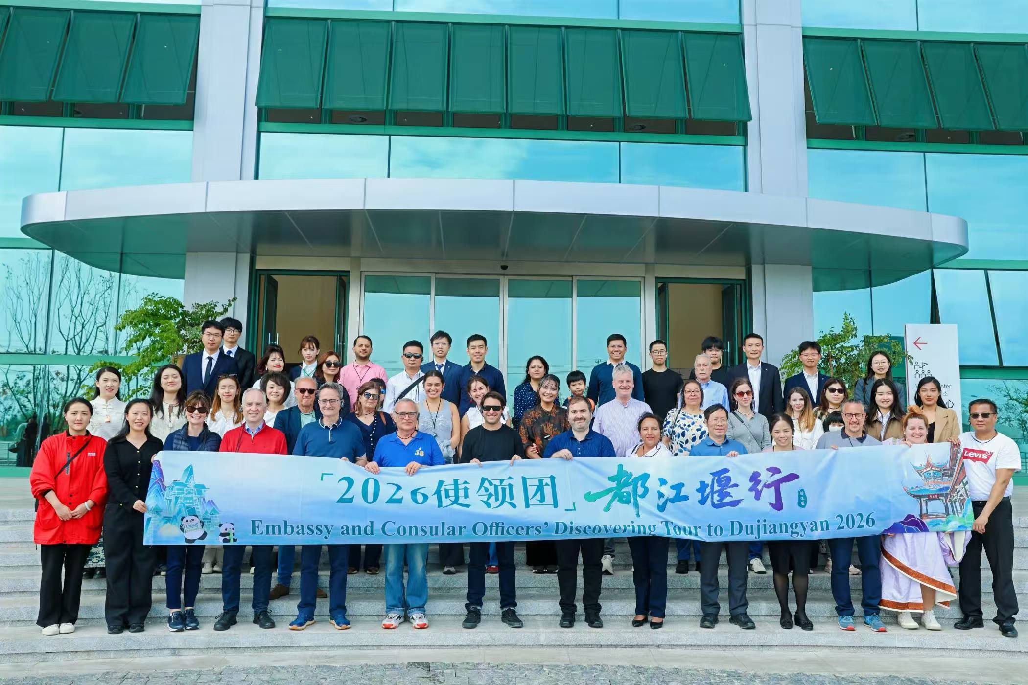 活动期间,我院志愿者接待了来自澳大利亚、爱尔兰、荷兰、西班牙等16个国家的50余位驻华使节及总领事,先后走进2026国际放水节大型活动现场、天府珍水产业园、中国大熊猫保护研究中心都江堰基地、特色茶园及青城山景区,陪同外宾们实地感受天府之国的生态禀赋、文化底蕴与产业活力。