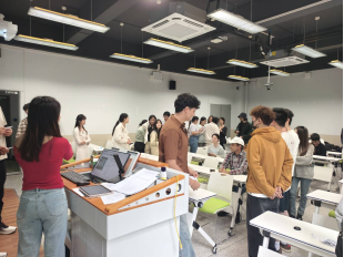 现场还设置节气配对挑战与谷雨诗词英译填空,大家在趣味互动中熟悉二十四节气英文表达,感受中英双语诗词的意境之美。分组讨论围绕谷雨习俗、家乡春日记忆、如何用英语介绍二十四节气展开,同学们畅所欲言,各组代表上台分享观点,尽显青春风采与文化自信。