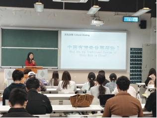 雨滴连线破冰游戏快速拉近距离,同学们手持英文单词卡,用英语寻找搭档、组合短语,轻松掌握谷雨、春季相关词汇;文化分享环节,喝谷雨茶、祭仓颉、赏牡丹、食香椿等传统习俗生动呈现,国际友人也热情分享本国春日习俗,多元文化在此碰撞交流。